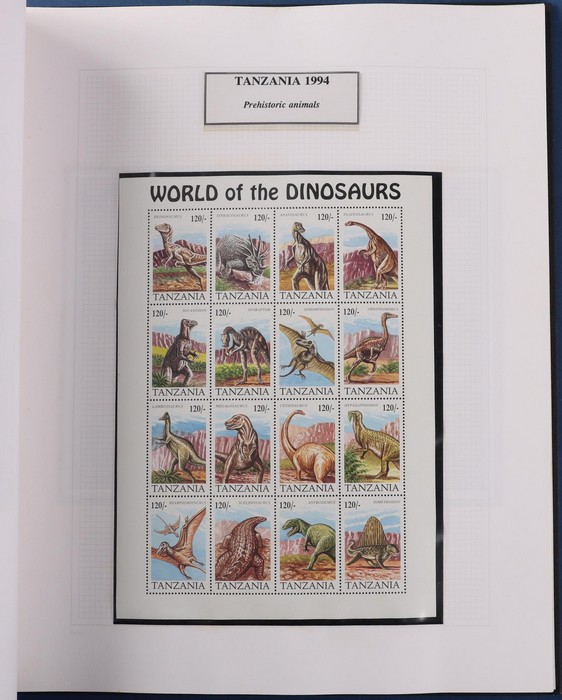 695 imageThematics - Dinosaurs: 1960s-2010 extensive collection in 2 large cartons with 7 excellent condition Davo albums with slipcases, 2 large shoeboxes. Covers most countries A-Z with sets, M/S & FDCs inc BAT 1990 set to £1, China 1984 Zigong Philatelic Exhibition M/S, 1968 Czechoslovakia Geological Conference set, 1969 France Red Cross set, various European, Africa, Asia & USA etc. Many 100s of complete sets, all diff & an estimated 500-600 M/Sheets sorted by country but yet to be mounted in the albums, also all diff. As so many M/Sheets are still in packets the collection is hard to evaluate. Books inc Dinosaur Stamps of the World, World of Dinosaurs North America & 2 catalogues. Also Hawid & Davo strip packets (20+) & mount guillotine. Also 80 Davo pages still in packets. This is an excellent Dinosaur Thematic collection. Beautifully presented. VF. Davo albums would retail $400+. (1500+, 600+ M/S, 150+ covers) (Image1) (Image2) (Image3) (Image4) (Image5) (Image6) (Image7) (Image8) (Image9) (Image10)