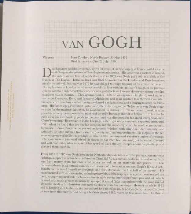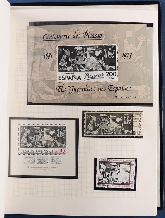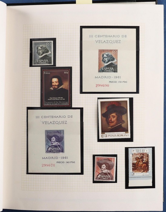 696 imageThematics - Painters 1970s-90s in 8 SG Senator albums, 2 Lighthouse albums & 1 binder. Very well laid out with a title page for each painter giving historical details etc. Then their paintings on stamps, FDC & M/S. 60+ painters, many countries inc Europe, British Commonwealth, Middle East inc many Arab States, South America, Japan, Australia with to $20 MNH, noted Spain 100th Anniversary Picasso, special 200 PTA M/S. Many sets, all diff. The Lighthouse binder with varios are a work in progress with painters identified but not written up. The as new binders & Lighthouse albums, Senator retail $700+. Huge amount of work gas gone into this collection. (3000+, 80+ M/S) (Image1) (Image2) (Image3) (Image4) (Image5) (Image6) (Image7) (Image8) (Image9) (Image10) (Image11) (Image12) (Image13) (Image14)