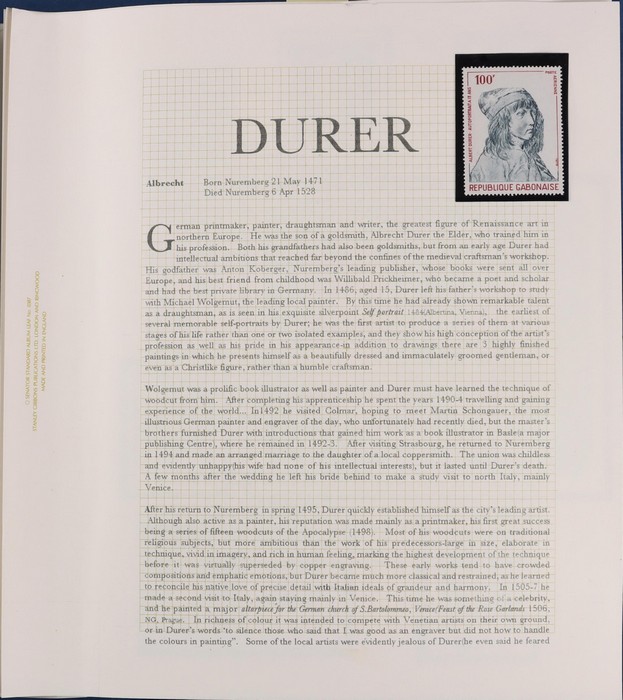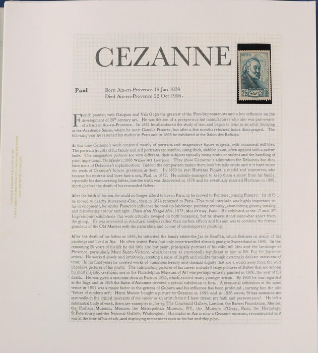 697 imageThematics - Painters 1970-90s Part II in 2 as new SG Senator albums, very well laid out with a title page for each painter giving historical details etc. Then their printings on stamps, FDCs & M/S. 50+ Painters, many diff countries, Europe, British Commonwealth, Middle East, South America etc, detailed list of painters & display pages. F-VF MNH, VFU, mostly MNH. Senator albums in F condition, retail $700+. Huge amount of work has gone into presenting this collection. (2500+, 100+ M/S) (Image1) (Image2) (Image3) (Image4) (Image5) (Image6) (Image7) (Image8) (Image9) (Image10) (Image11) (Image12) (Image13) (Image14) (Image15) (Image16) (Image17) (Image18) (Image19) (Image20) (Image21)