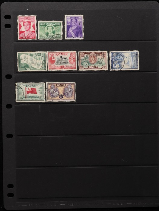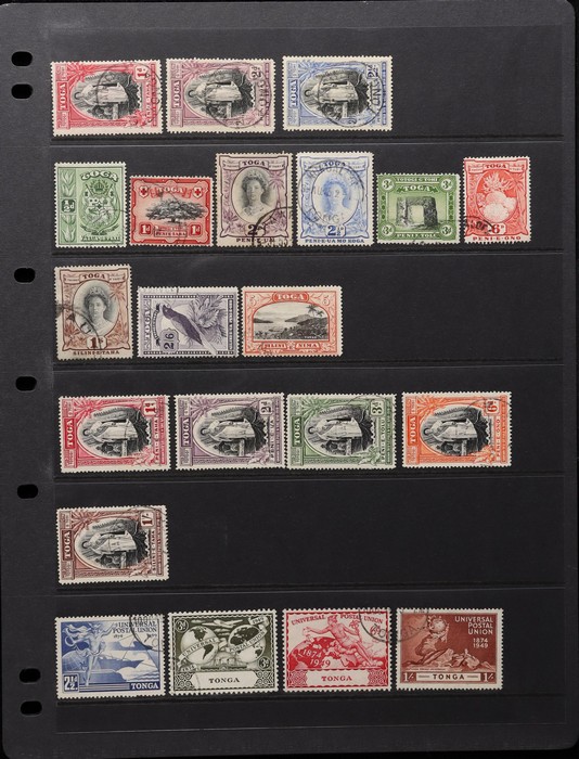 699 imageTonga: 1938-51 KGVI used inc 1938 20th Anniv set, 1942-49 Pictorial Def set to 5/- wmk script, 1944 Silver Jubilee set, 1949 UPU, 1950 50th Birthday set & 1951 Friendship Treaty set. All diff. VFU. SG cat £181. (30) (Image1) (Image2)