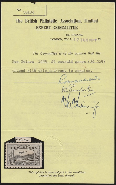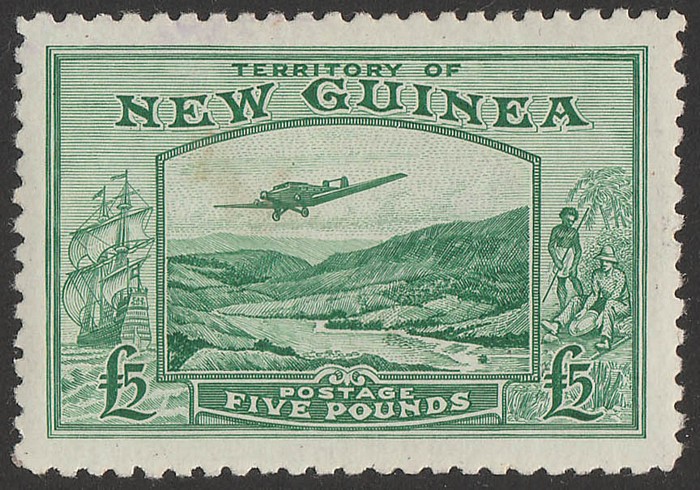 £5 green. VF fresh M. Scott C45 cat US$750. SG 205 cat £750. Scarce top value. BPA photo-cert. (P) (Image1) (Image2)
