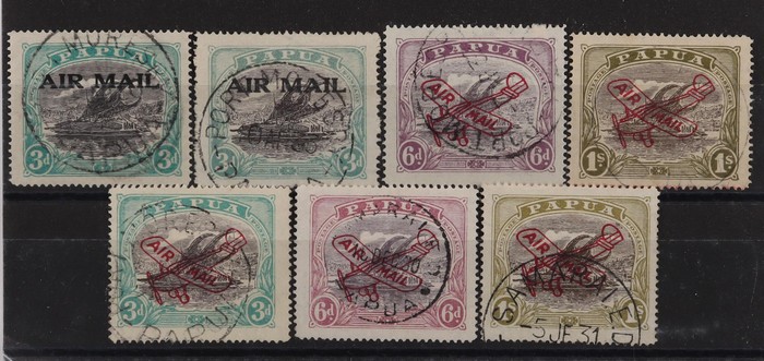 Airmail opt 3d (2 shades), plane opt 6d & 1/- Harrison & 3d to 1/- Ash printings. VFU all with nice cds. SG 112, 114, 116-20 cat £122. (7). (Image1)