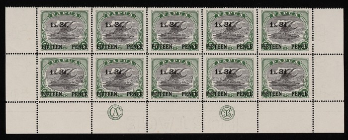 Lakatoi 5/- in CA/JBC monogram blk of 10 (5x2). VF fresh MNH. SG 123 cat £130 as M singles, should be at least double, £260 MNH, plus premium for monogram blk.