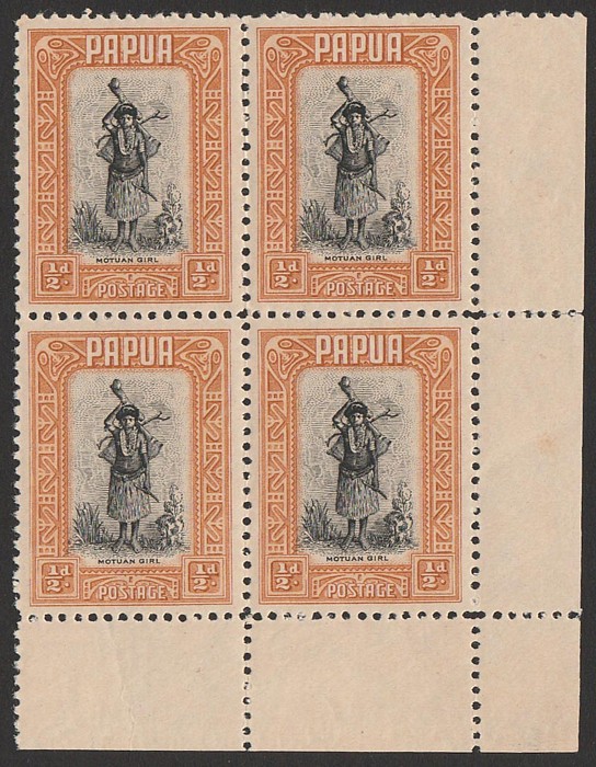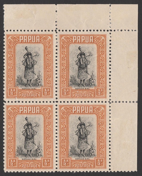 ½d black & buff McCracken printing UR cnr blk of 4. VF MNH. SG 130a cat £100 as M singles, should be at least double, £200 MNH. (Image1)