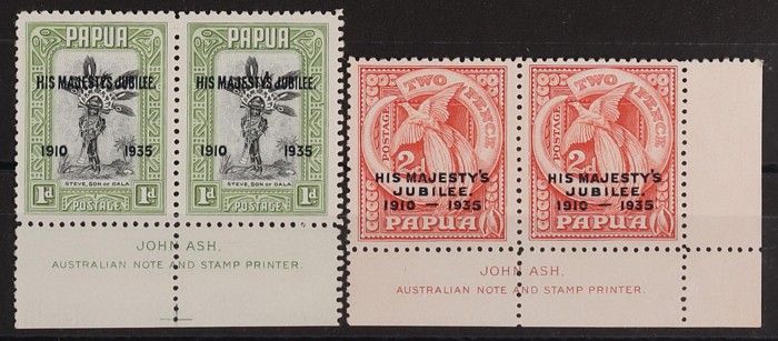 imprints collection. 1932 Pics ½d to 2/6 imprint prs (ex SG 140/141), blks of 4, 1934 50th Anniversary set 1d-5d John Ash imprint strips of 3, 1935 Silver Jubilee 1d, 2d & 3d imprint prs with 1d & 3d with 'accent' flaws. Mainly fresh VF MLH