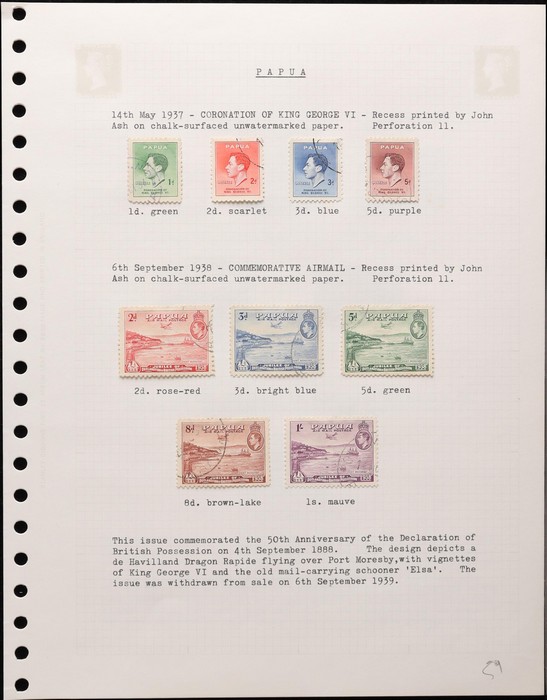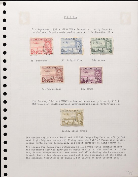 collection 1890s-1930s on hagners in slipcase, on piece & several covers. Arranged in Roger Lee 'Postal History of BNG & Papua' order. Early Samarai cds T25 on QLD 2/-, on piece & 5/-, range of Port Moresby cds on Lakatoi to 1/- inc partial Post