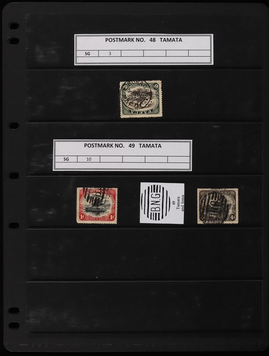 Office T20 rating E. Samarai T24 on 1d BNG rating E, full 'Registered Samarai, BNG' on ½d, T26 rating D, Daru range, Tamata T48 on 2d BNG rating F, Woodlarks T60 on 3 stamps inc 4d & 1d blk of 4 rating E, Registered Woodlarks on 2 pr, T61