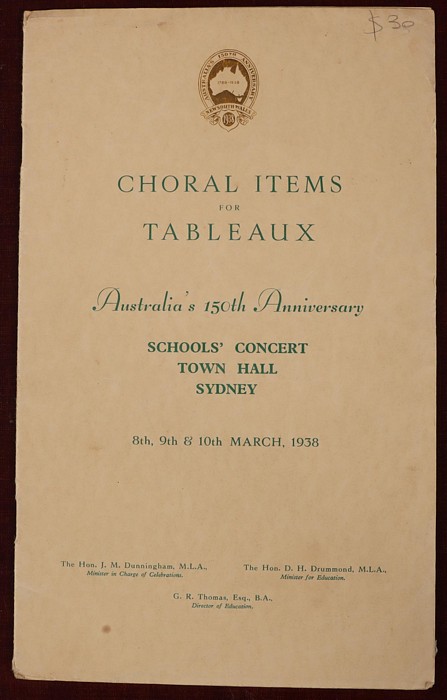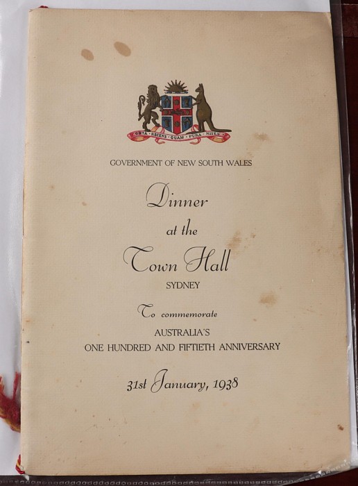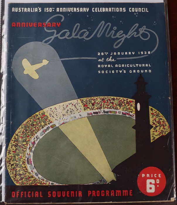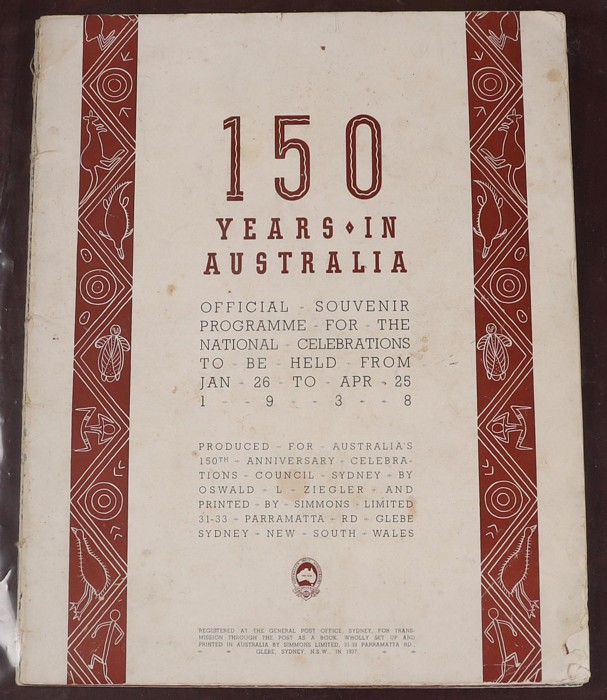 752 imageAustraliana: 1788-1938 150th Anniversary booklet collection with 20 diff items inc 'An Historic Retrospect' featuring Capt Phillip on the front cover, Australian Cricket Tour (to England), Australia's 150th Anniv Grand Combined Services Tattoo, British Empire Games (Sydney) 1938 Souvenir Programme, Public School Children's Festival SCG - April 1938, Royal Easter Show 1938 Programme, Robinson's Souvenir Atlas, plus other interesting souvenirs, all dated 1938. Generally F-VF condition. (Image1) (Image2) (Image3) (Image4) (Image5) (Image6) (Image7) (Image8) (Image9) (Image10) (Image11) (Image12) (Image13) (Image14) (Image15)