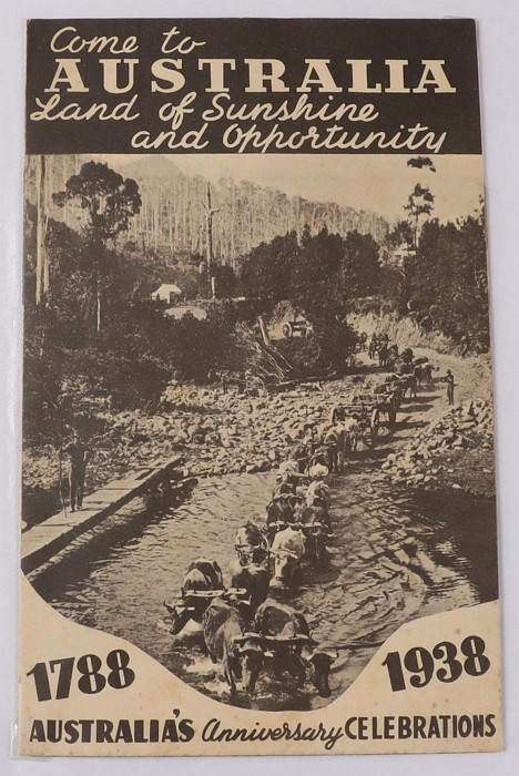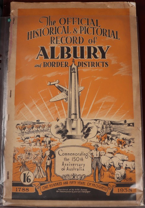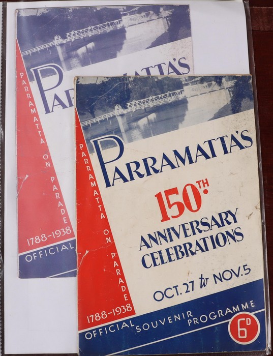753 imageAustraliana: 1788-1938 150th Anniversary ephemera collection with around 30 diff items inc 'Made in Australia 1938' 275 pg over-size souvenir book pub by Sydney Morning Herald with emphasis on Industrial Achievements. Then a variety of smaller publications inc Aspro Year Book 1938, Australian Cricket Tour (England) 1938, Bradford Scout Jamboree souvenir book, Australian Historical Exhibition Catalogue, Eighth Australian Philatelic Exhibition Catalogue, Jamboree Campfire Song Book, 1938 Govt of NSW Dinner Menu, Newcastle Celebrations Programme, Parramatta 150th Anniv Celebration Booklet & more. Mostly G-VGC. (Image1) (Image2) (Image3) (Image4) (Image5) (Image6) (Image7) (Image8) (Image9) (Image10) (Image11) (Image12) (Image13) (Image14) (Image15) (Image16)