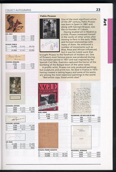 755 imageAutograph Catalogue: 'Collect Autographs (An illustrated guide). With valuations. Pub 2008 by Stanley Gibbons with 269 pgs listing 100s of signatures & profusely illustrated throughout. Near new. Current reference. Long out of print (not published since 2009) (Image1) (Image2) (Image3) (Image4) (Image5)