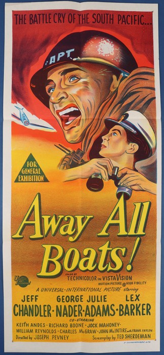 757 imageMovie Poster: 1956 'Away All Boats' inc Jeff Chandler, colour printed in Sydney 35-75cm (Image1)