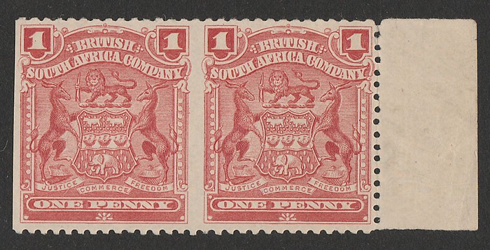 red, right marginal horiz pr error IMPERF between & at left. Stamps superb fresh MNH. Scott 60e cat US$450 for M, SG 78c cat £800 for M, should be at least double, £1600 MNH. Rare so nice. (P) (Image1)