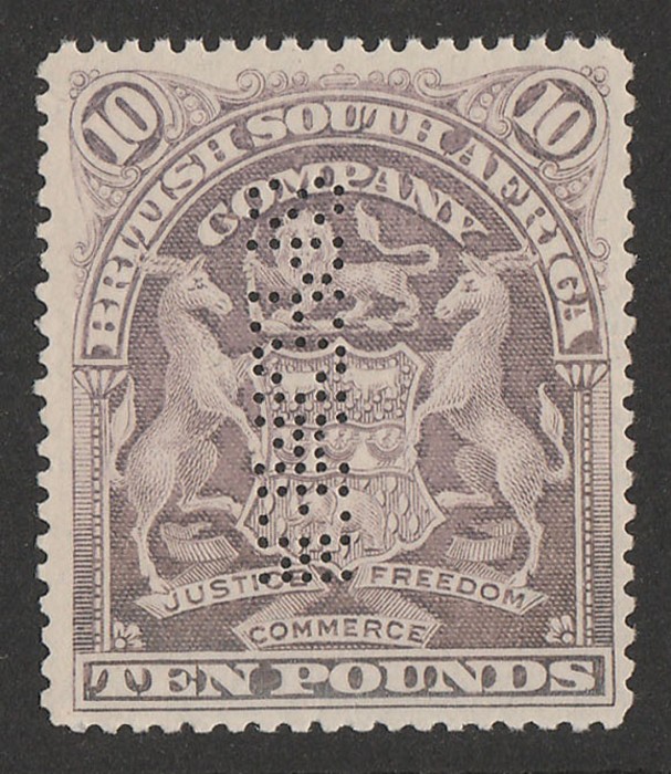 £10 lilac, perf SPECIMEN reading down. VF UN. SG 93s est cat £450 (normal cat £4000). (P) (Image1)