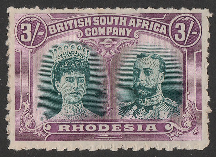 Head 3/- bright green & magenta, perf 14 (shade is RSCA deep bluish-green & deep purple). Superb fresh MLH. Scott 114a cat US$1300, SG 158a cat £1300. Raybaudi photo cert. (P) (Image1) (Image2)
