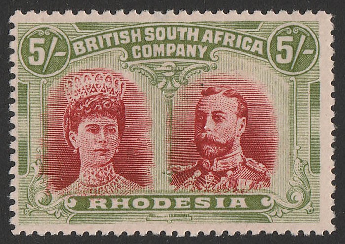 Head 5/- crimson & yellow-green. VFU, part Salisbury cds. Scott 115 cat US$225. SG 160a cat £200. (P) (Image1)