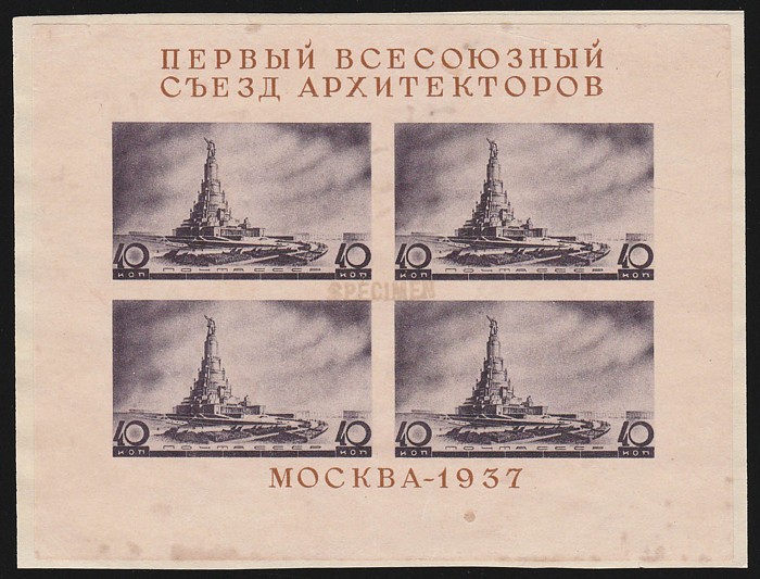 Congress 1R-60 M/Sheet being 'specimen' from UPU distribution, with local 'SPECIMEN' h/s (type PORC7) applied by Portuguese Ministry for the Colonies. F-VF UN affixed to piece ex archive pages, some aging. SG MS741c(2), Mi Blk 2(s). Unique item from