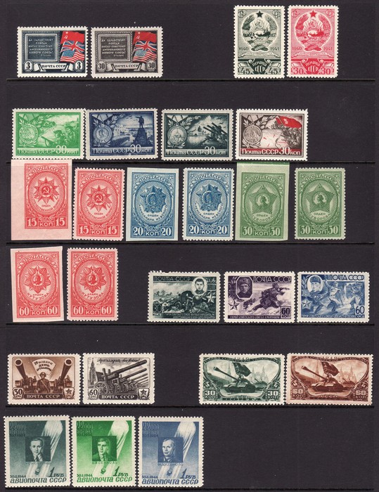 selection to 60k, perf & imperf. 1945 Aviation 1R set. 1946 Tank set. Mostly VF MNH. Mi cat €490+. SG cat £300+ for M, should be at least double, £590 MNH. (72).