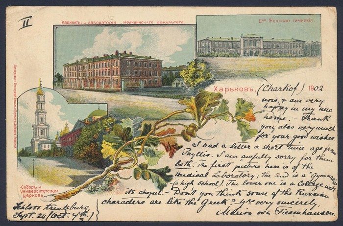 views of Charkof (now Kharkiv in Ukraine) franked Arms 4k tied by indistinct cds. To Australia with Sydney arrival cds. (Image1) (Image2)