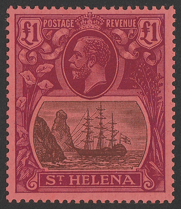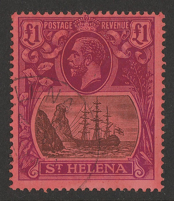 £1 grey & purple on red. VFU, St Helena cds. Scott 99 cat US$700, SG 96 cat £800. (P) (Image1)