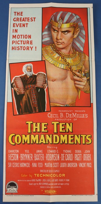 761 imageMovie Poster: 1956 'The Ten Commandments' inc Charlton Heston, by Paramount Pictures, colour printed in Sydney, 35x75cm. (Image1)