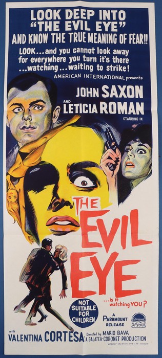 763 imageMovie Poster: 1963 'The Evil Eye' inc John Saxon, colour printed in Sydney 35x75cm. (Image1)