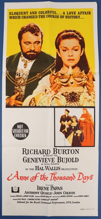 766 imageMovie Poster: 1969 'Anna of the Thousand Days' inc Richard Burton, colour printed in Sydney 35x75cm. (Image1)