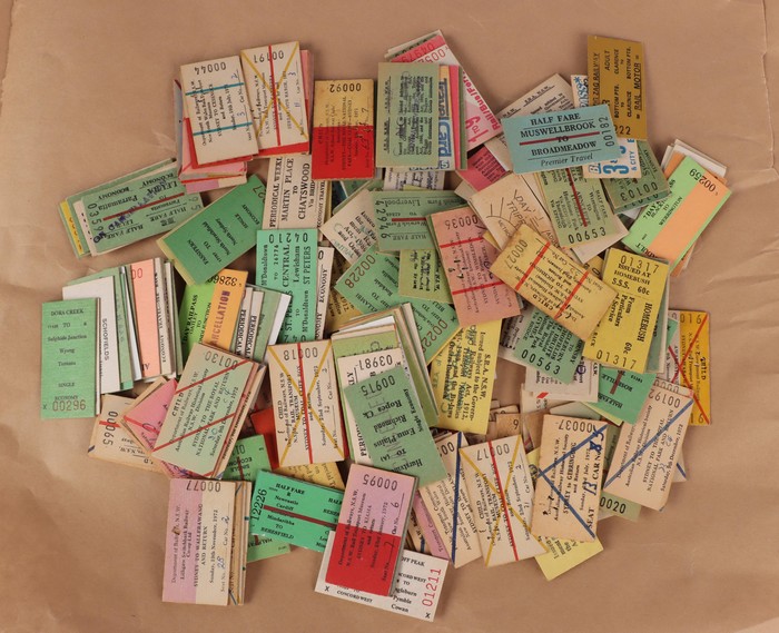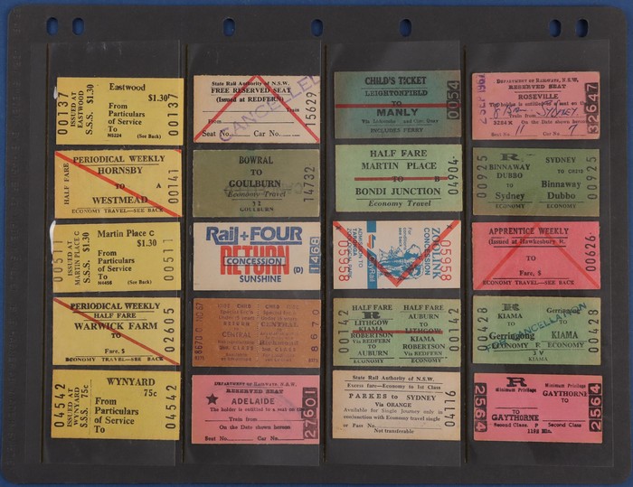 770 imageRailways: NSW Railway Tickets. Massive collection/hoard of 1970s-80s Edmondson tickets with around 7000 tickets inc a possible comp set. Huge variety throughout with no heavy duplication. Generally VF/excellent condition inc 'Cancelled' opts. Hoards of such complexity/quality rarely appear on the market! (7000) (Image1) (Image2) (Image3)