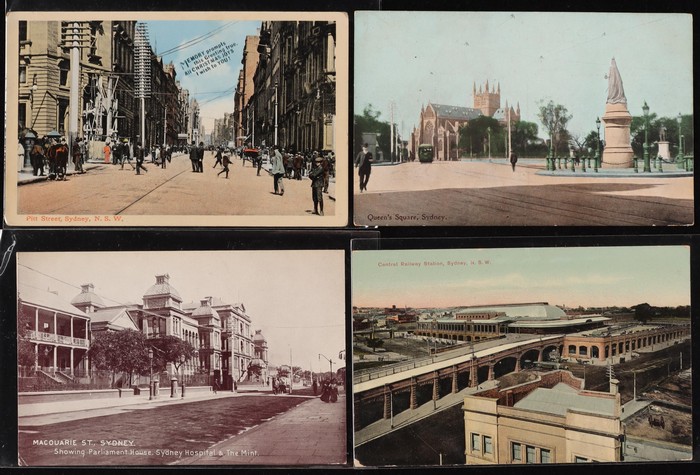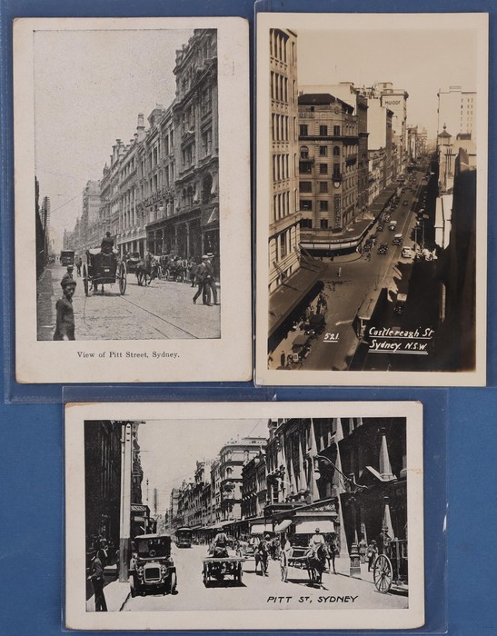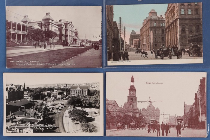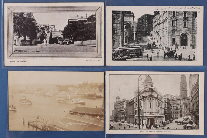 776 imageAustralia - NSW Sydney City Part One: Neat early 1900s collection with Street Scenes inc Argyle Cut, Macquarie, Bridge, King, Park, Clarence & Pitt Streets, plus General Views, Architecture, Historic Buildings, City Sites & odd Greeting. Mixed UN/U, F-VF condition. (100) (Image1) (Image2) (Image3) (Image4) (Image5) (Image6)