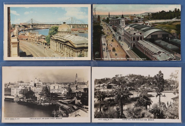 780 imageAustralia - Queensland: Brisbane & Suburbs early 1900 (100+) with City Street Scenes, Central Land Marks inc Railway Station, Govt House, Custom House, Brisbane River, Storey Bridge, Parliament House, Shrine of Remembrance, plus suburbs inc Wickham St Valley, Toorah Hill, Hamilton Reach, Newstead Park, Marrs Auckland Villa, Queensland University & Milton Reach. Mixed UN/U, mostly VF condition. Also selection of 1950s-60s medium size photographs (25). (125+) (Image1) (Image2) (Image3) (Image4) (Image5) (Image6)