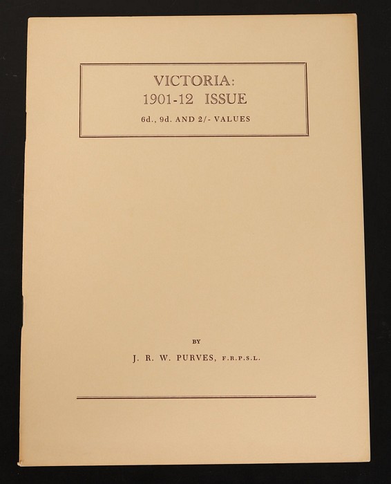 1901-12 issue, The 1½d, 2d & 2½d values by JRW Purves, 29 pgs, Hawthorn Press 'Monograph No 4' pub 1954. Outer covers sl scuffed, contents clean. (Image1) (Image2)