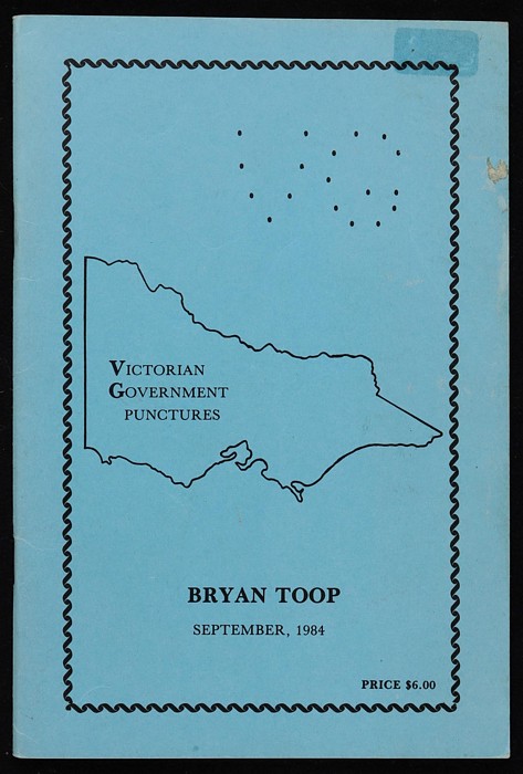 Government Punctures by Bryan Toop. 34 pgs, 3rd edition 1984 with listings of punctures on Commonwealth Stamps, early 1930s onwards. Near new. (Image1) (Image2)