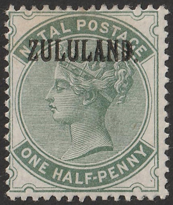 Natal ½d dull green with stop after ZULULAND. F-VF fresh MLH. Scott 12a cat US$63. SG 12 cat £55. (Image1)