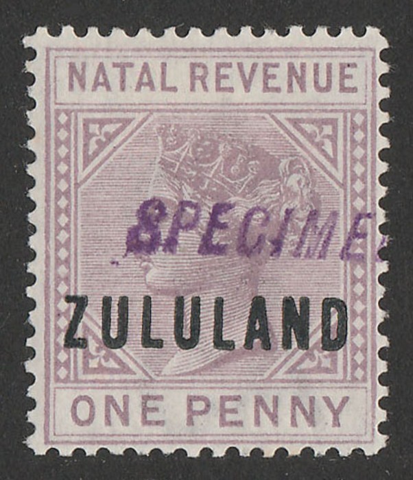 QV Natal Revenue 1d dull mauve Postal Fiscal, h/s SPECIMEN. VF fresh MLH. Yv FP15. SG F1s cat £75. (Image1)