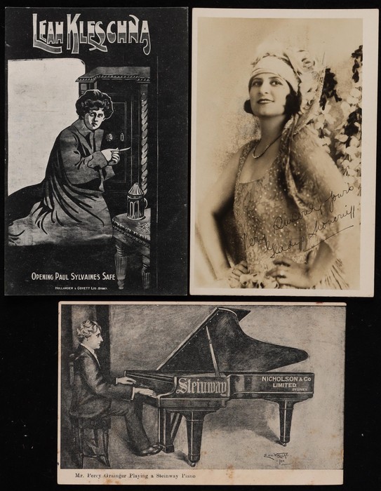 Collection of mostly Stage & Screen inc WS Percy set of 6, plus 1930s Autograph. Gladys Moncrieff promotional photograph for Columbia Records (2), Amy Bock (NZ, 3), Nell Stewart at the Lyric Theatre, Fitzroy VIC. The Scarlet Troubadours & Eleanor