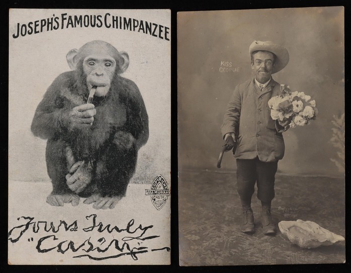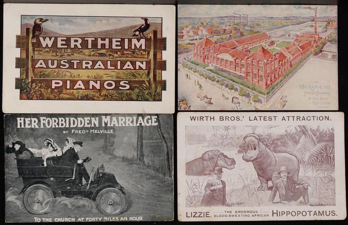 Chimpanzee. Wertheim Australian Pianos Pictorials (2 diff) & Luna Park St Kilda real photo. An attractive difficult assembly, mostly F-VF condition. (38 items) (Image1)