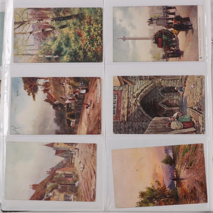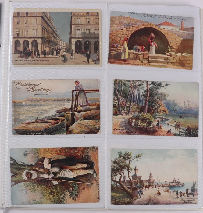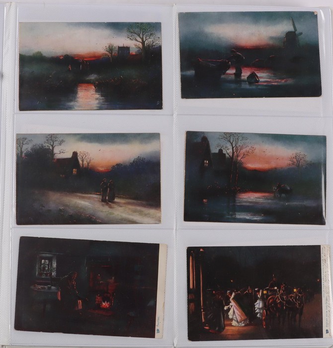 large album classic period to more recent times with 1950s-90s Artist cards (120) inc Winter Scenes, Provincial Customs/Dress, Rural Views & others. Glamour (15) inc Asti Portraits. Greetings/Romance/Children (60). Western Europe City/Country Sights