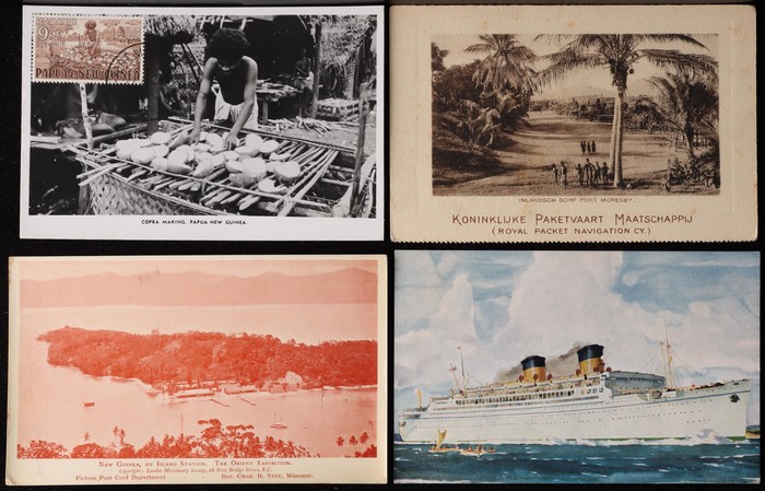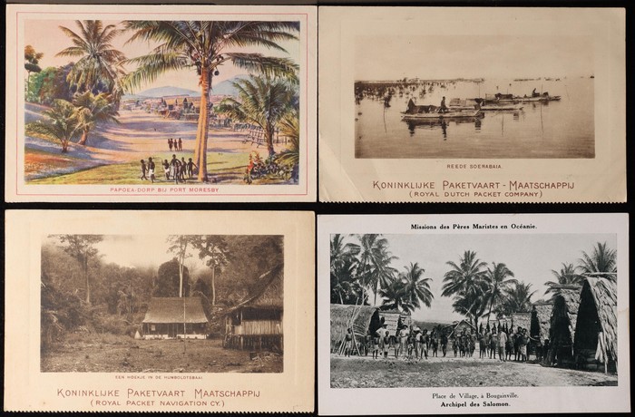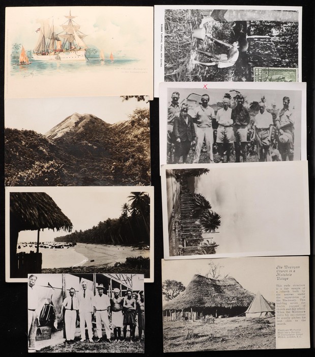 Diverse group in small box inc mission cards from Solomon Islands & Rhodesia, a few Methodist missionaries, some very attractive shipping cards with Dutch KPM group inc Port Moresby artist card & a superb 1911 advertising card used at Singapore with