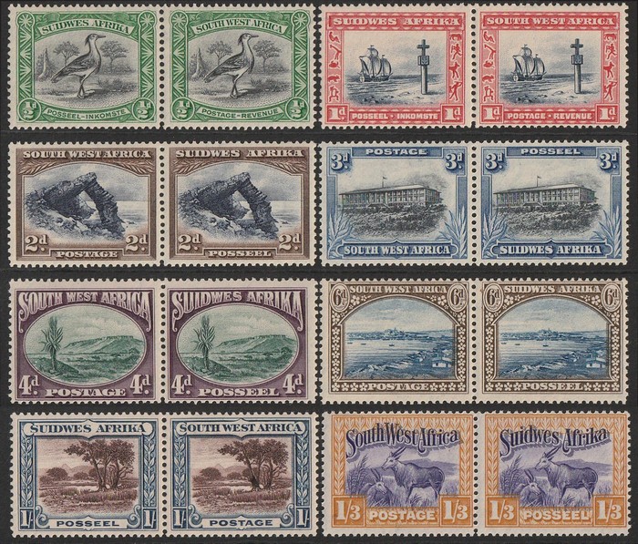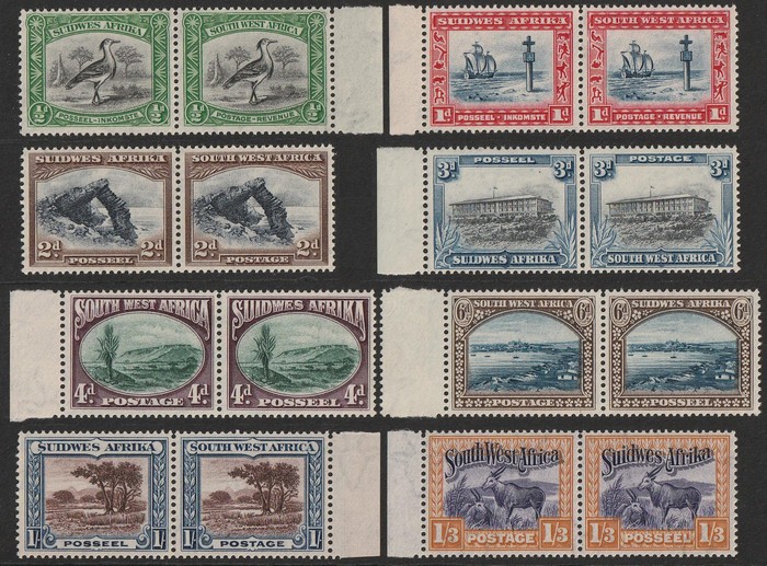 to 1/3, all bilingual horiz prs. VF fresh MNH. Scott ex 108-116 cat US$23 for M. SG 74-81 cat £25 for M, should be at least double £50 MNH. (8 prs) (Image1)