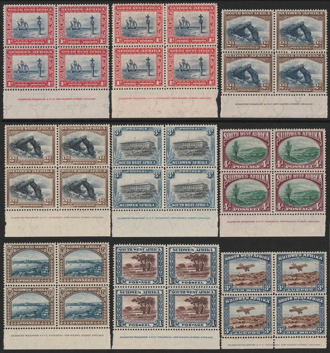 ½d-6d plus 1d blk of 4, UL stamp variety no stop after 'Africa'. 1927 setting VIII opt set to 6d. 1928 SWA opt set to 6d. + 6d no stop after 'A' 1931 set to 6d. F-VF fresh M/MLH. SG cat £510+ = $1000+. (P) (Image1) (Image2)