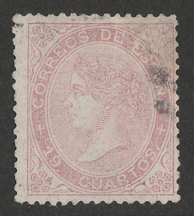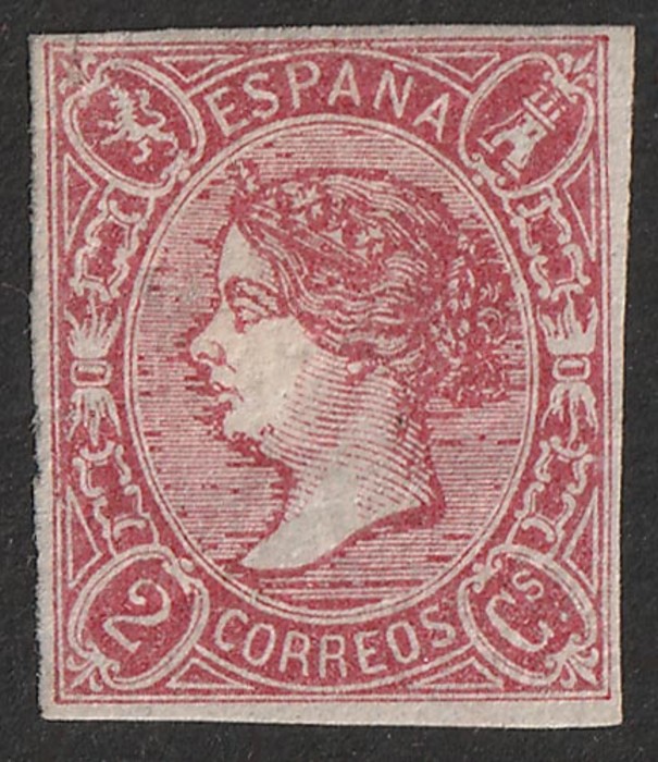 lilac/lilac, imperf. VFU appearance, sl flts, 4 margins. Edifil 66 cat €180. SG 78 cat £250. Exp Scheller. (Image1)