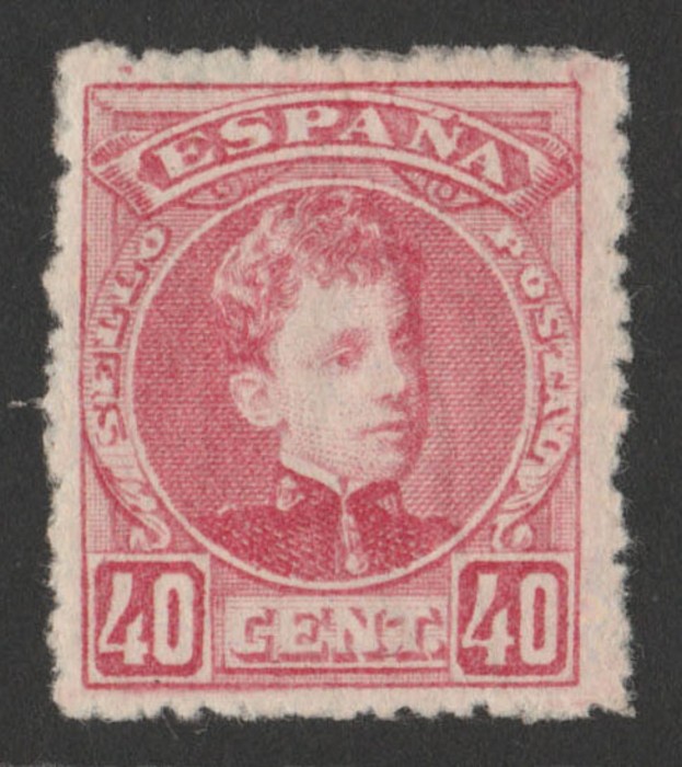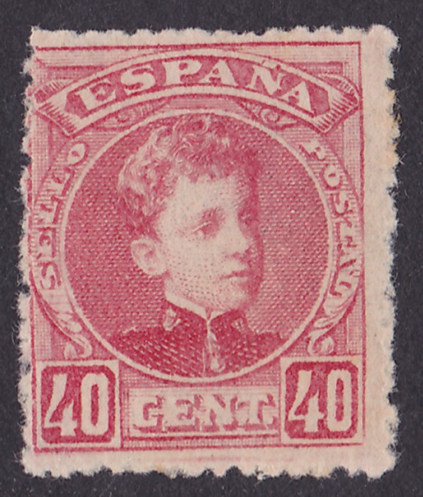 Alfonso 40c rose, blue control no. A000,000 (specimen) on back. F-VF MNH. SG 302(s) cat £350+ for M normal, should be at least double, £700 MNH. Edifil 251Na cat €930. (P) (Image1) (Image2)