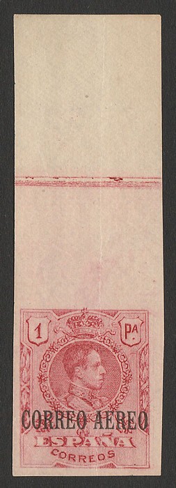 blue, with 'tilde' over 'N' of 'ESPANA', imperf. M, 4 margins, flts. Scott X2 cat US$450, SG C3 cat £650, Edifil 156 cat €785. Rare genuine example. Exp Scheller. (P)