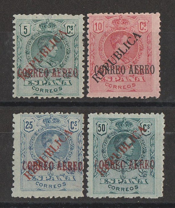 'REPUBLICA' diag opt 'CORREO AEREO' King set 5c-50c. VF fresh M/MLH. SG 683-686 cat £68, Ed 29-32 cat €105. (4). (Image1)