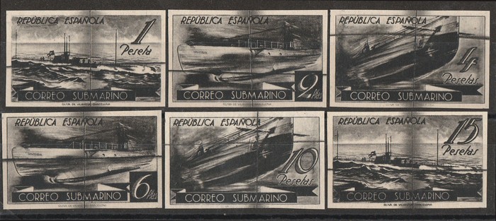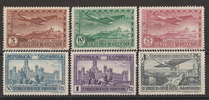 Civil War set 1P-15P, opt MUESTRA (specimen). VF fresh UN. SG 857a-857e cat £650 for normal. Ed 775-80M cat €486. Scarce & attractive set. (6) (P) (Image1)