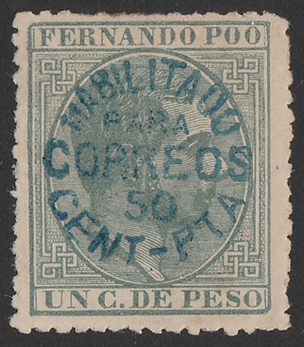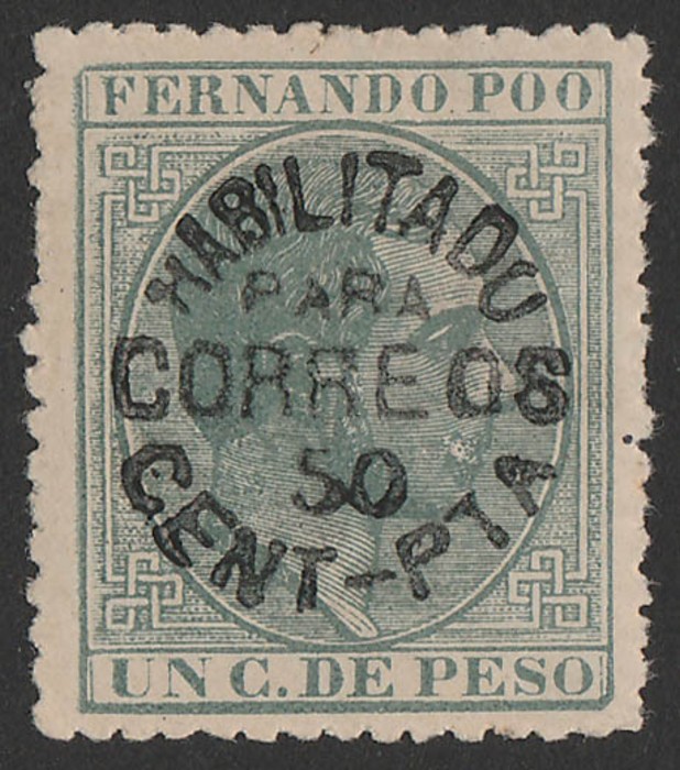 1884-93 'Habilitado Para Correos' circular opt King 50c/1c grey, black opt. Superb fresh MLH. Sc cat US$120. SG 9B cat £160, Ed 9 cat €175. (P) (Image1)