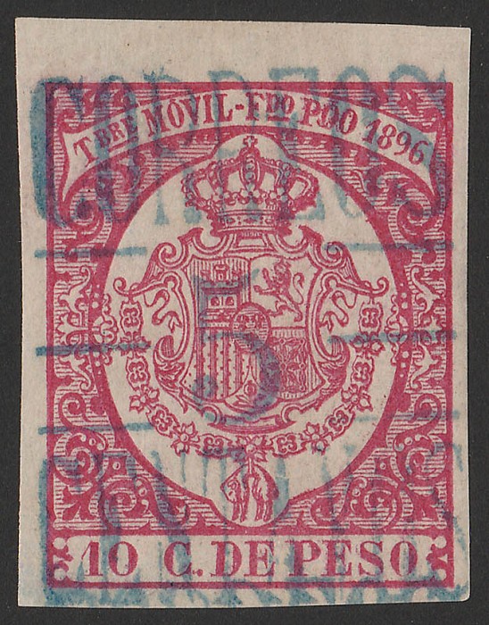 'Habilitado Para Correos' blue opt Fiscal 10c rose-red, inscribed 'TBRE MOVIL - FDO POO 1896', imperf. VF fresh M, 4 margins. Sc 40. SG 32 cat £40, Edifil 41B cat €41.