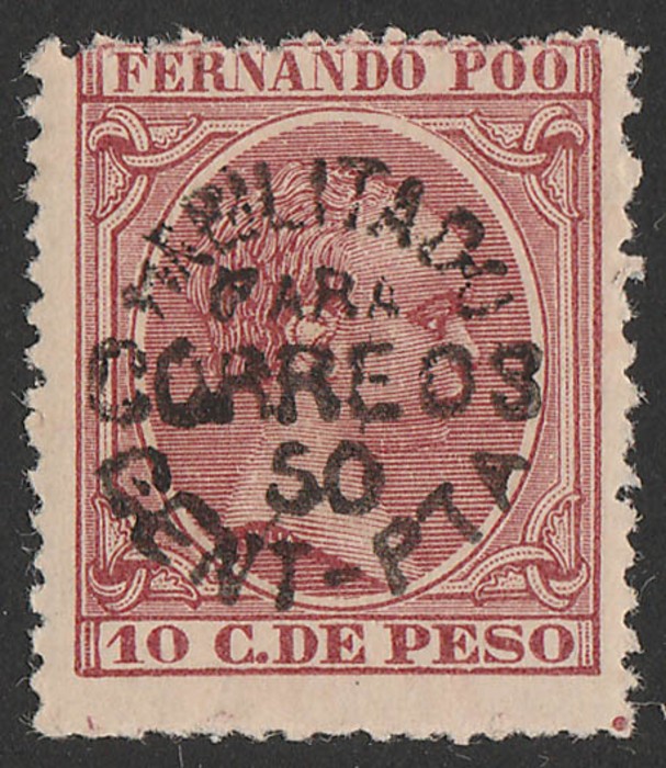 1898-99 'HABILITADO PARA CORREOS' circular black opt Baby 50c/10c pale lake. VF fresh MLH. Sc 36 cat US$230. SG 47a unpriced, Ed 27 cat €295. Exp Galvez. (P)