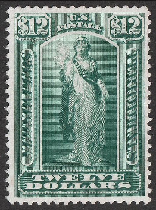 Periodical $12 yellow-green, American Bank Note Co printing on soft paper. Superb UN. SG N246 cat £850. Sc PR75 cat US$325 for UN or US$850 for M. (P) (Image1)