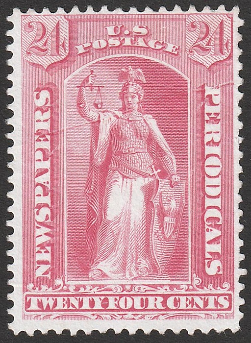 Periodical 24c rose-carmine American Bank Note Co printing on soft paper. VF UN, sl horiz crease. SG N254 cat £180. Sc PR83 cat US$95 for UN or US$225 for M.