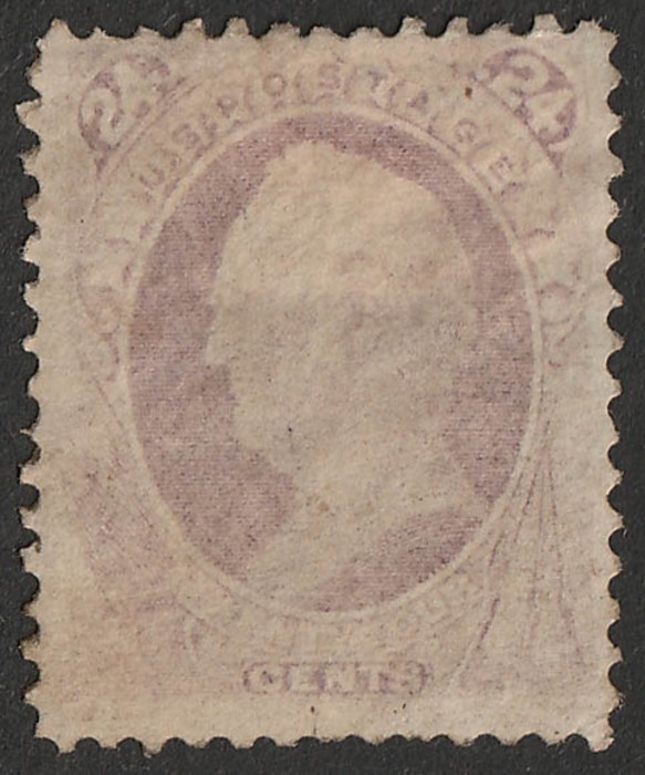 Scott 24c purple, Continental Bank Note Co, no grill. F M/UN, partial disturbed gum, will look better if soaked. Scott 153 cat US$650 (US$1700 with gum). SG 155 cat £1900.